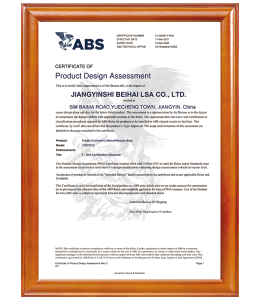 江陰市北海救生設(shè)備有限公司是一家專注于高性能船艇,救生/救助艇,水面無人艇,和收放裝置的設(shè)計、研發(fā)、生產(chǎn)、銷售及服務(wù)的有限公司;公司具有一級Ⅱ類纖維增強塑料船舶生產(chǎn)資質(zhì),二級鋁質(zhì)船舶生產(chǎn)企業(yè)資質(zhì)和三級Ⅱ類鋼質(zhì)船舶生產(chǎn)資質(zhì)。